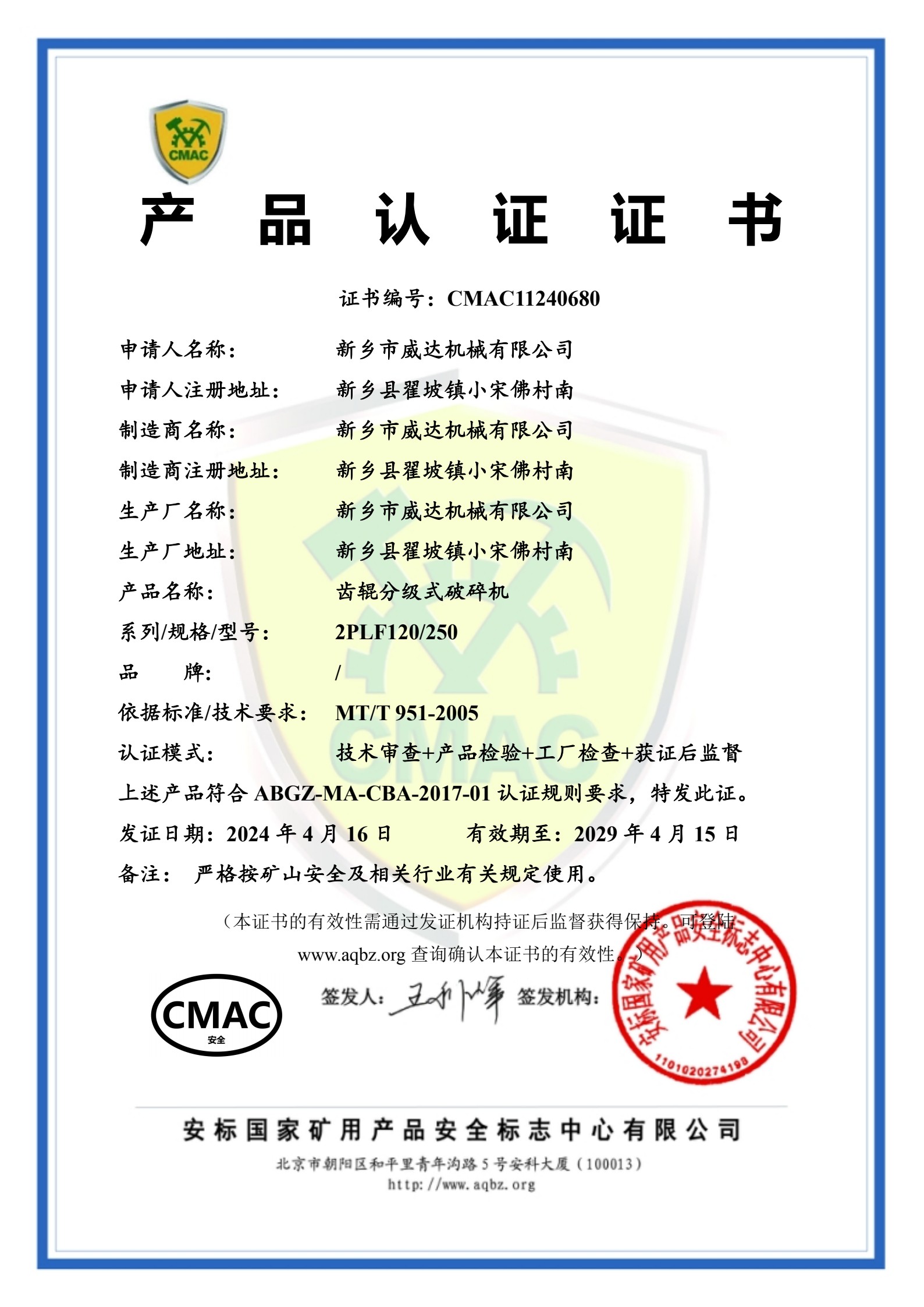 環(huán)境管理體系認(rèn)證證書